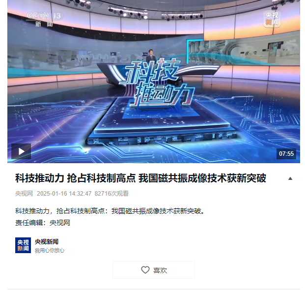 【CCTV13】科技有助于力 抢占科技制高点 我国磁共振成像技术获新突破