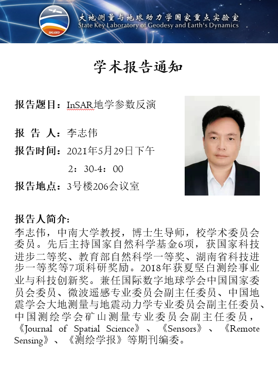 2021年5月29日巅峰国际大地测量与地球动力学国家重点实验室学术预告