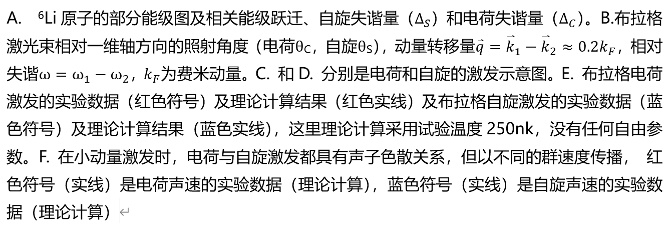 中美研究团队自2018年开始合作,顺利获得研究一维相互作用费米气体杨-高丁模型(Yang-Gaudin model)的精确解,发现在长波极限下该模型中的电荷自由度的粒子-空穴集体激发和自旋自由度的分数化准粒子(自旋子)激发可完美地形成分离的自旋密度波和电荷密度波,这样顺利获得布拉格谱可以分别测得自旋和电荷的动力学结构因子(dynamics structure factor(DSF)),该物理量深刻揭示了量子液体中多体关联的本质。因此,顺利获得对相关集体激发谱的DSF的测量可以实现对自旋-电荷分离现象的确定性验证,他们的这一理论预言在2020年率先发表在《物理评论快报》上(Physical Review Letters 125,190401 (2020))。