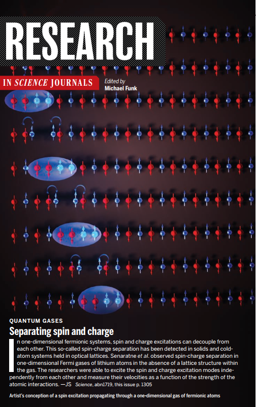 相关研究成果以“具有可控相互作用一维费米气体中的自旋-电荷分离“Spin-charge separation in a 1D Fermi gas with tunable interactions”为题,发表在《科学》 (Science)杂志上。在本项工作中管习文科研团队负责理论计算及分析,管习文与兰迪·休利特教授为共同通讯作者。