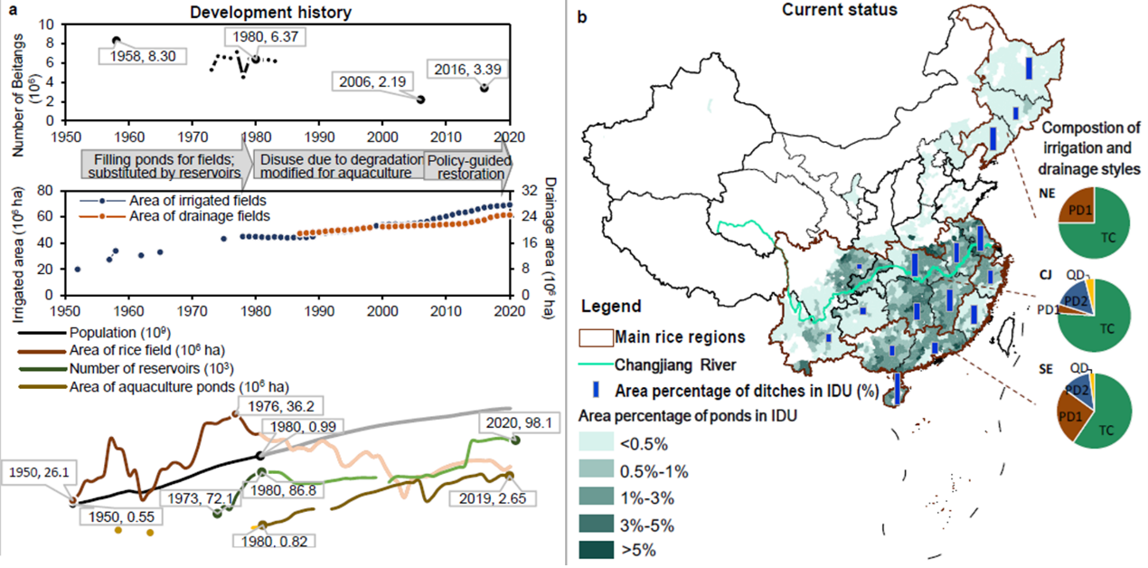 中国稻区灌排系统开展历程及小水体利用现状图.