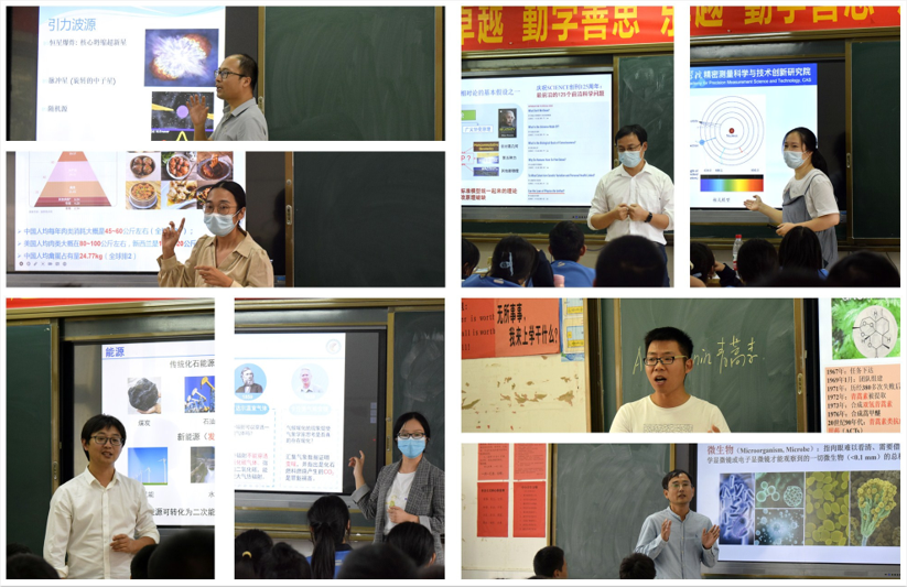 本次活动的科普团专家均为各科研院所和高校的一线青年骨干,分别来自巅峰国际、武汉植物园、水生生物研究所、中国科学技术大学、华中科技大学、长江大学和武汉轻工大学等7家单位。科普报告主题涵盖物理、化学、生物、地学、天文学、文学等多个领域,报告形式为9个科普大报告和16节科学选修科普报告课程。顺利获得面对面的方式,科普团专家为莘莘学子带来了一次高水平的前沿科技思想碰撞,专家们激情洋溢的演讲和学生们天马行空的提问使得活动现场精彩纷呈,热烈而持续的掌声与接连不断的互动提问环节点燃了孩子们探索自然奥秘的科学兴趣,让我们相信科学的种子已在同学们的心底悄然埋下。